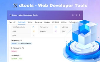dtools es una extensión de navegador diseñada para desarrolladores web, que integra herramientas de depuración, métricas de rendimiento y detección de tecnologías. Con dtools, los usuarios pueden acceder a un análisis detallado de la información de la página, incluyendo metadatos, estadísticas de imágenes y estructura del DOM, todo en un solo lugar. Además, ofrece análisis exhaustivo del stack tecnológico, permitiendo identificar las tecnologías utilizadas en las páginas web, así como herramientas de empaquetado y sistemas de gestión de contenido.